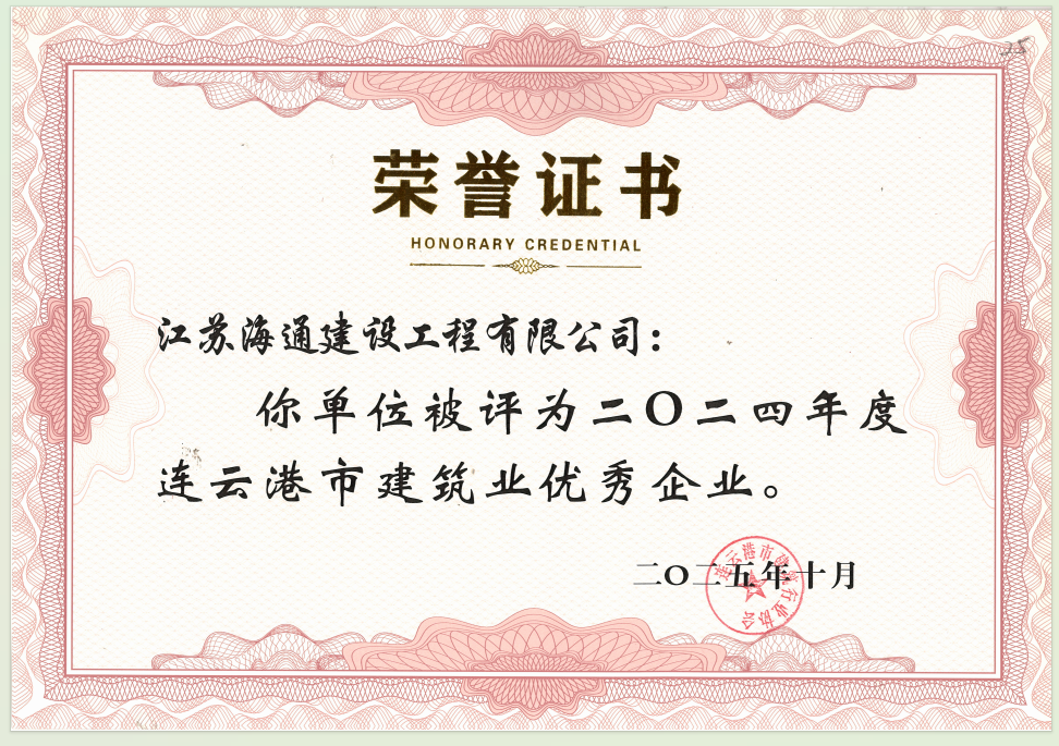 近日,連云港市建筑行業(yè)協(xié)會(huì)發(fā)布了2024年度建筑業(yè)優(yōu)秀企業(yè)、優(yōu)秀經(jīng)理及優(yōu)秀項(xiàng)目經(jīng)理評(píng)價(jià)結(jié)果。江蘇海通建設(shè)工程有限公司獲評(píng)“2024年度連云港市建筑業(yè)優(yōu)秀企業(yè)”,公司黨委書記、董事長于振國同志獲評(píng)“2024年度連云港市建筑業(yè)優(yōu)秀經(jīng)理”。