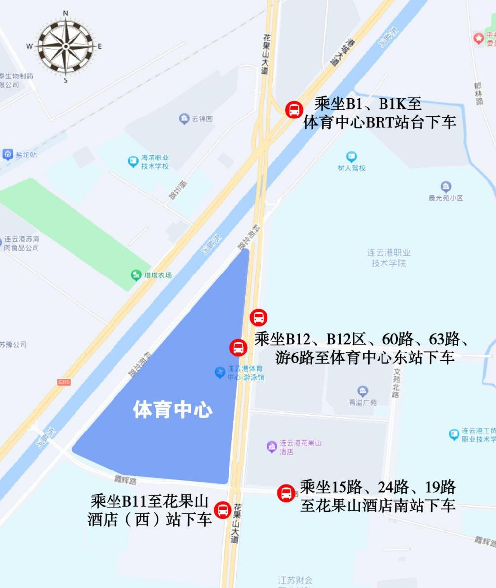★觀眾散場(chǎng):可在體育中心東門(mén)、西門(mén)、南門(mén)乘坐免費(fèi)接駁車(chē)至圣湖路文苑路口臨時(shí)接駁點(diǎn)(716研究所對(duì)面)、市政府廣場(chǎng)臨時(shí)接駁點(diǎn)(文化藝術(shù)中心);也可至BRT體育中心站乘坐B1夜班線返回海州或墟溝城區(qū)。