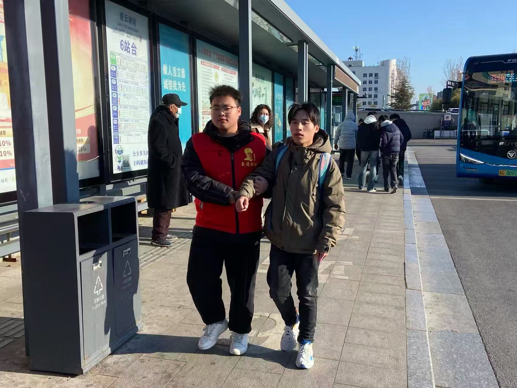 見到旅客,志愿者主動(dòng)上前攙扶,一路耐心引導(dǎo)前行,時(shí)時(shí)輕聲提示腳下路況、細(xì)致描述周邊環(huán)境,用溫暖話語化解旅客身處陌生環(huán)境的不安。從高鐵站出口到公交站臺(tái)的這段路,因志愿者的貼心陪伴變得格外安心順暢。抵達(dá)站點(diǎn)后,志愿者提前與公交司機(jī)溝通,清晰說明旅客的下車地點(diǎn)及注意事項(xiàng),小心翼翼將旅客扶至座位,并再三叮囑司機(jī)多加關(guān)照?!坝心銈?cè)?,我心里踏?shí)多了,出門再也不犯愁了!”盲人旅客感動(dòng)地連連道謝。