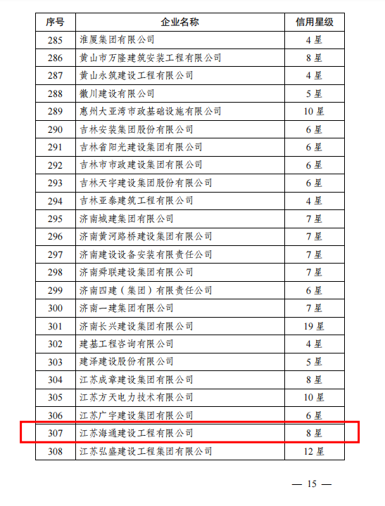 根據(jù)中國施工企業(yè)管理協(xié)會發(fā)布的中施企協(xié)信用字〔2022〕15號文通知,江蘇海通建設工程有限公司獲得2022年第二批工程建設企業(yè)信用8星級認定。