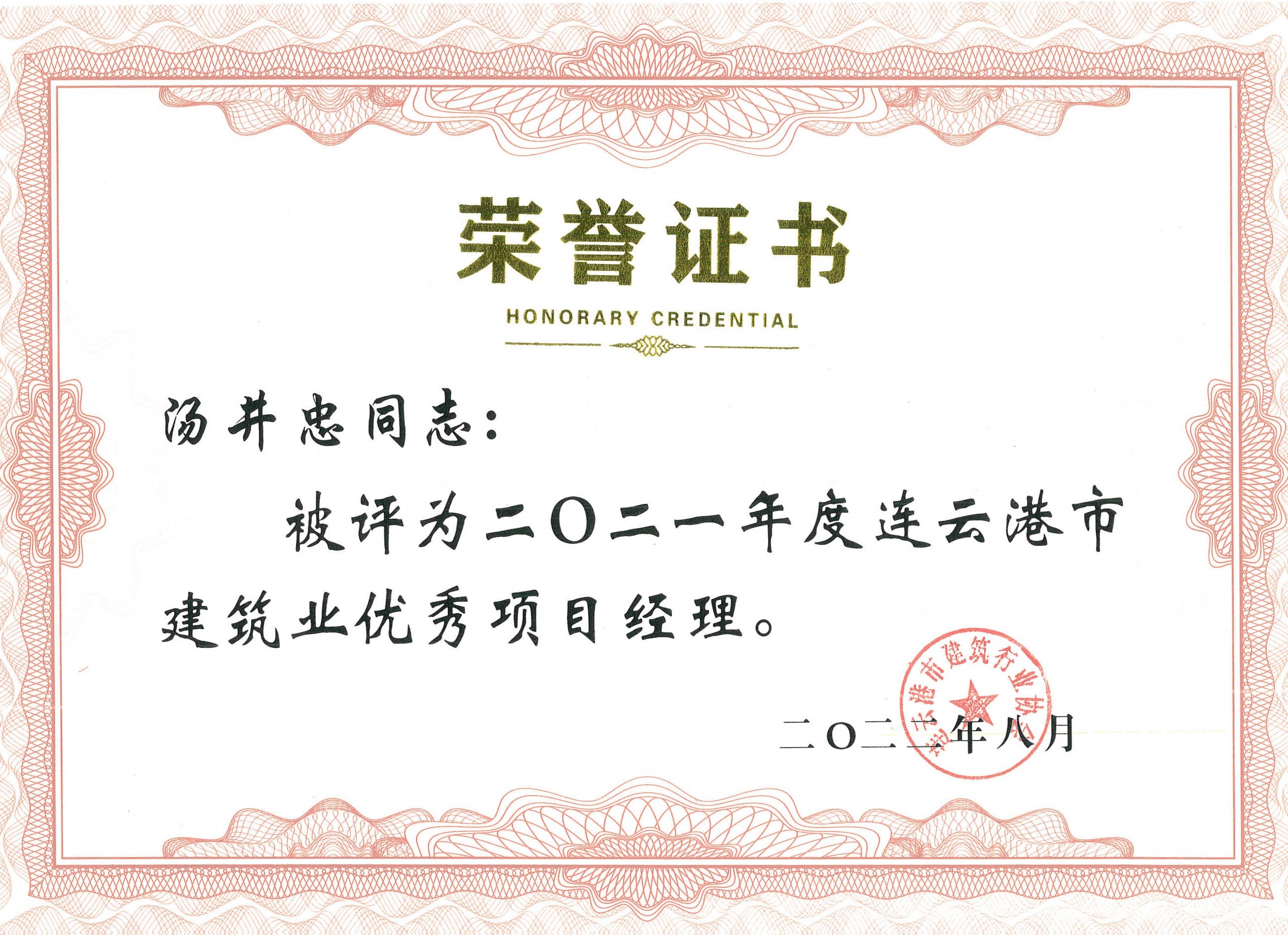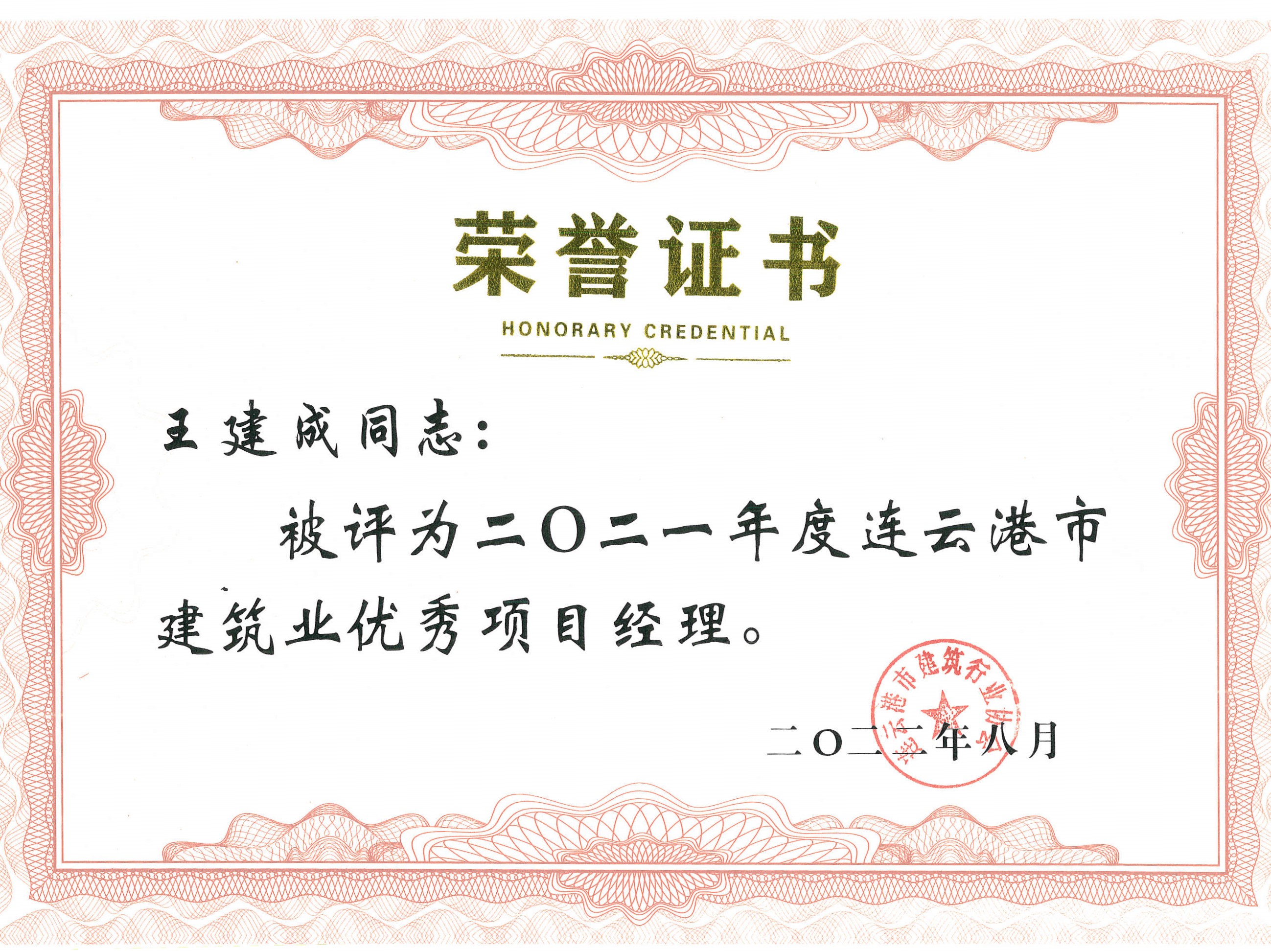 近日,從連云港市建筑業(yè)協(xié)會獲悉,江蘇海建公司獲評“2021年度連云港市建筑業(yè)優(yōu)秀企業(yè)”,同時,公司總工程師劉智獲評“2021年度連云港市建筑業(yè)優(yōu)秀經(jīng)理”,職工湯井忠、王建成獲評“2021年度連云港市建筑業(yè)優(yōu)秀項目經(jīng)理”。