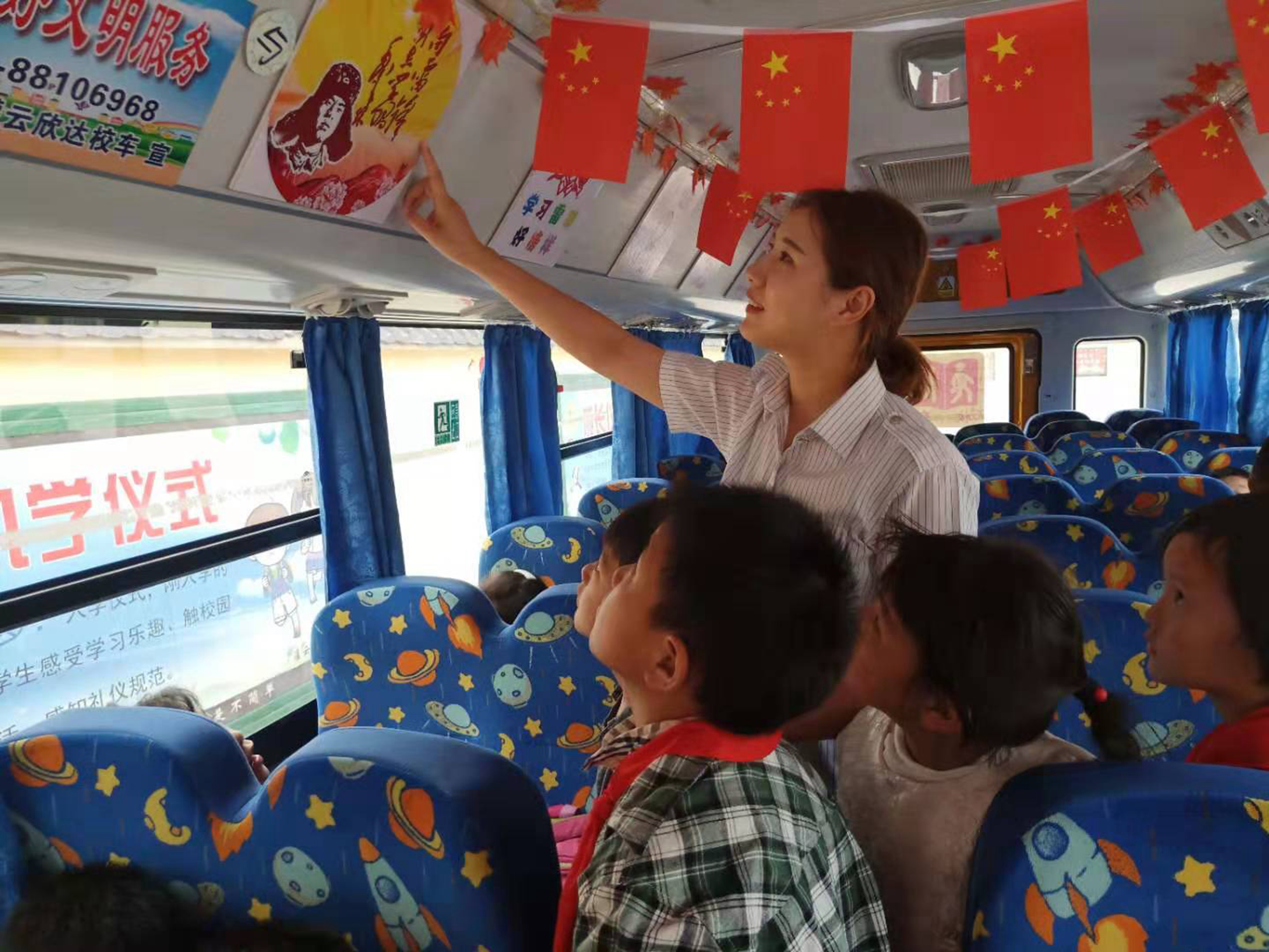 校車主題文化車廂的創(chuàng)建,充分體現(xiàn)了灌云欣達(dá)校車“民生工程”的定位,既是增強(qiáng)校車駕駛員、照管員與乘車學(xué)生之間“友誼”的粘合劑,也凸顯了灌云欣達(dá)校車“用百分之百的愛心承運(yùn)著祖國(guó)的未來”的宗旨,在真正意義上踐行了“我們用心、孩子開心、學(xué)校安心、家長(zhǎng)放心”的服務(wù)理念。
