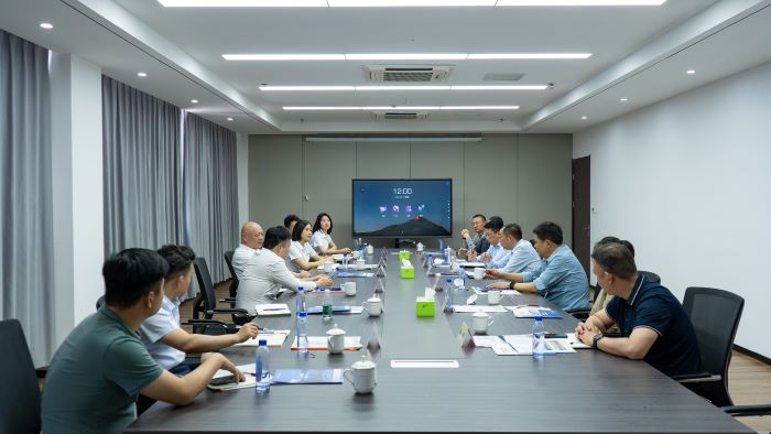 在海宏科技數(shù)字化展廳,陳斌一行全面聽取了海宏科技的整體實力介紹,詳細了解海宏科技在工業(yè)物聯(lián)網(wǎng)及移動機器人、智能制造、高速數(shù)控凹版印花三大板塊取得的創(chuàng)新成就和成功經(jīng)驗,近距離感受和體驗海宏科技在移動充電機器人領(lǐng)域的實踐成果。