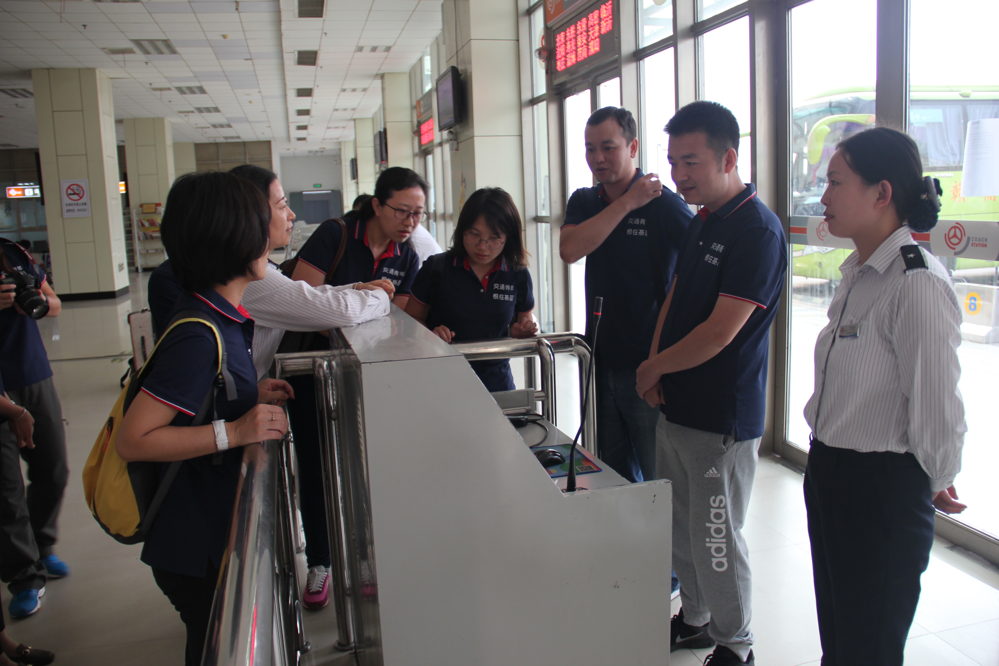 9月22日,由交通部直屬機關(guān)青年干部20余人組成的參觀調(diào)研團來到新浦汽車總站調(diào)研參觀“雷鋒車”組。江蘇省交通運輸廳副調(diào)研員錢京江、市交通局副局長藺寧君、汽車運輸有限公司董事長李樹軍、汽車運輸有限公司黨委書記周文君及相關(guān)領(lǐng)導(dǎo)參加調(diào)研。