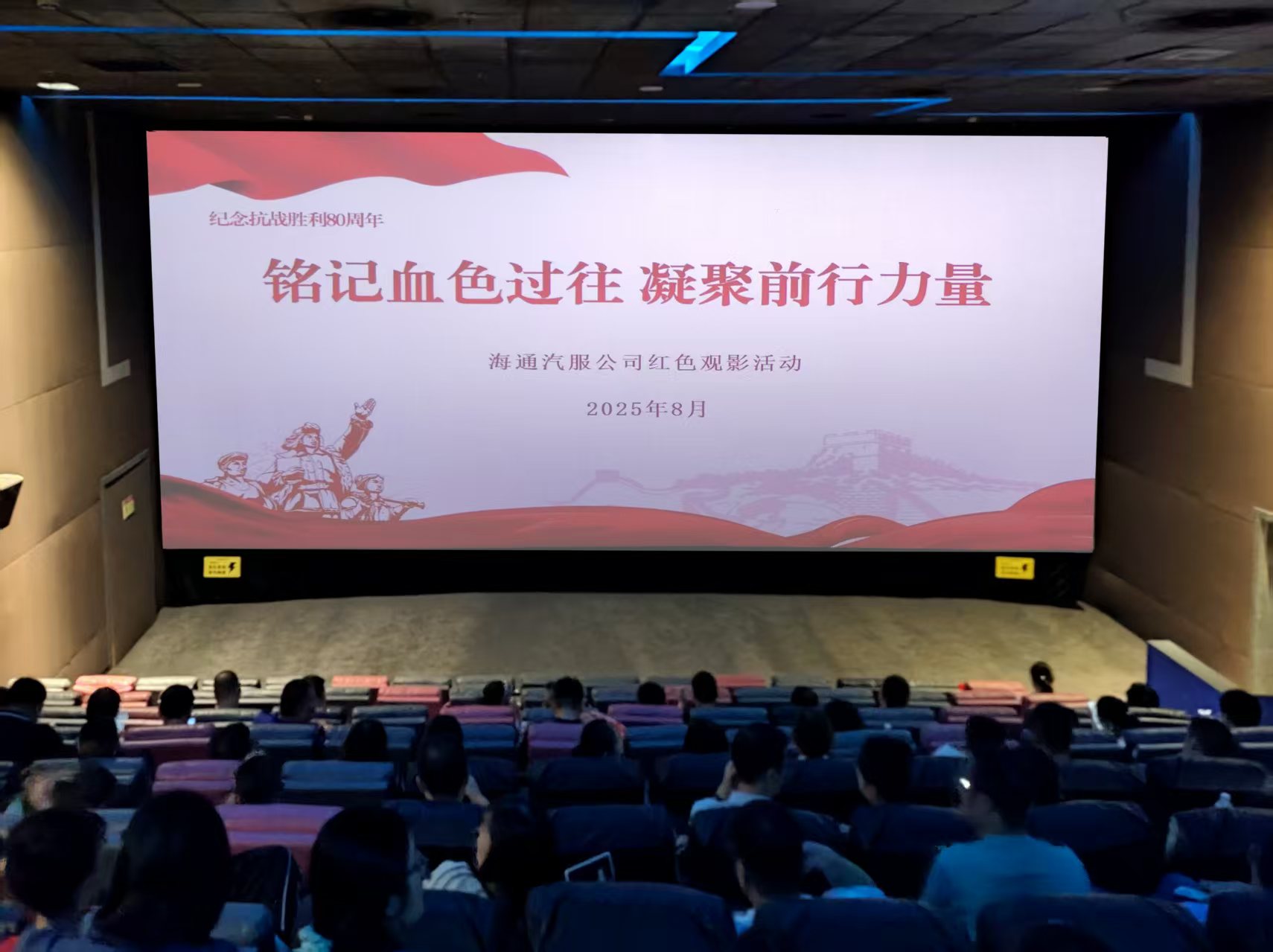 為紀念中國人民抗日戰(zhàn)爭暨世界反法西斯戰(zhàn)爭勝利80周年,深化愛國主義教育,8月15日,海通汽車服務公司組織開展“銘記血色過往、凝聚前行力量”主題紅色觀影活動,通過觀影引導干部職工重溫抗戰(zhàn)歷史,傳承紅色基因。
