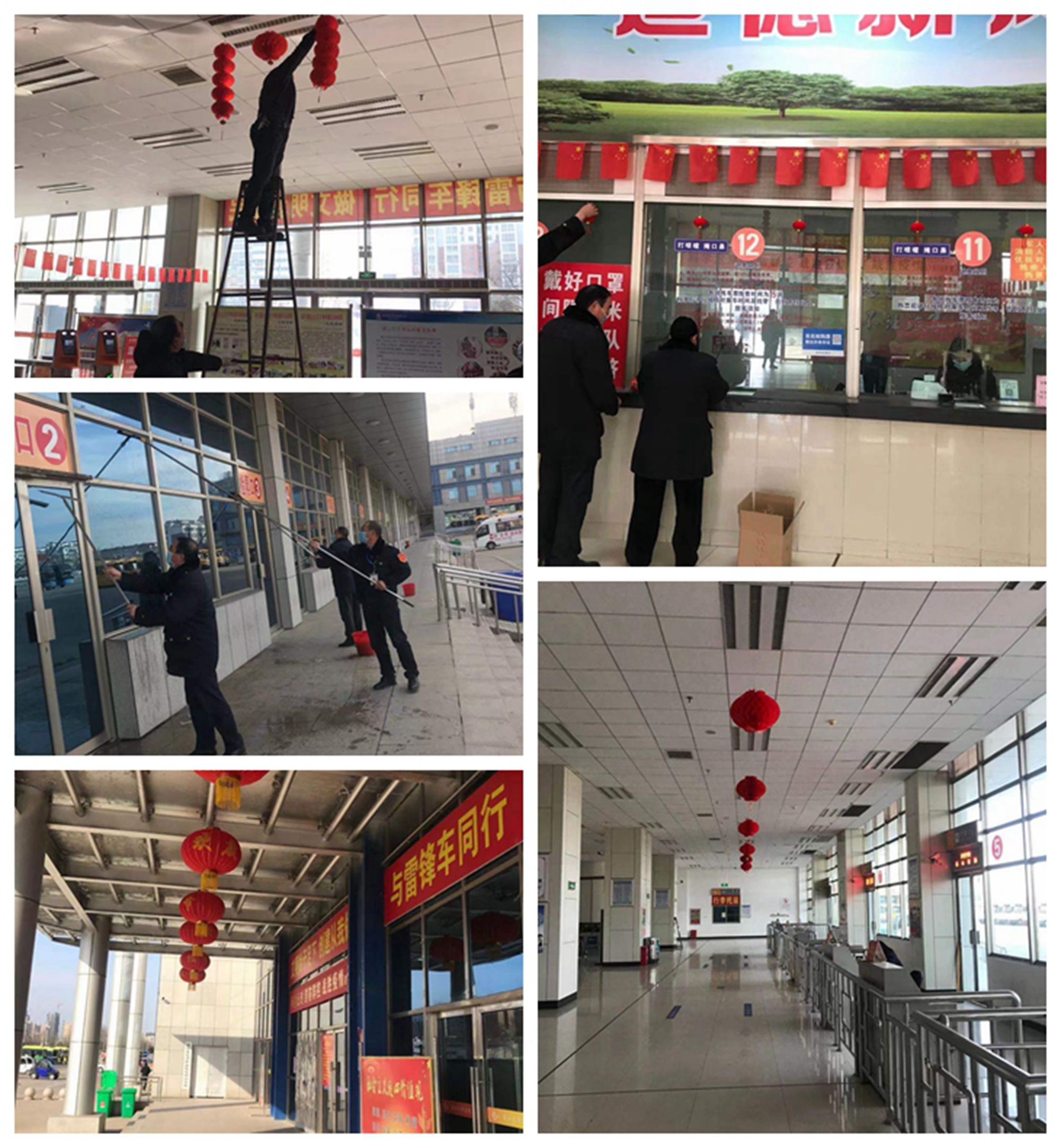 客運站組織站務人員對站場、候車區(qū)進行全面清掃,不留死角確保干凈整潔,無積存垃圾。對售票大廳、候車廳、檢票口懸掛燈籠,并充分利用展板、橫幅等懸掛新春祝福。通過布置,整個客運站張燈結彩,紅紅火火,洋溢著濃濃的年味,呈現(xiàn)出一派喜慶祥和的景象。